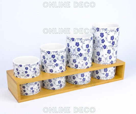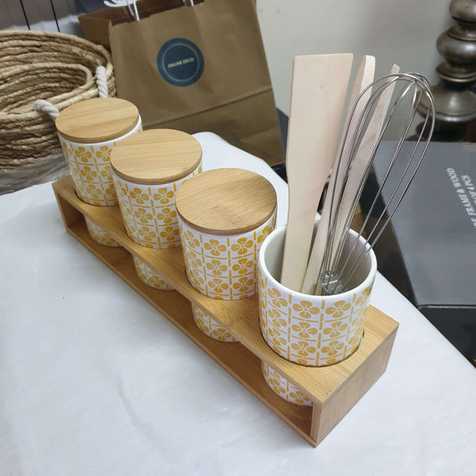 Ensemble de 4 pots à épices en céramique/bambou- différentes tailles